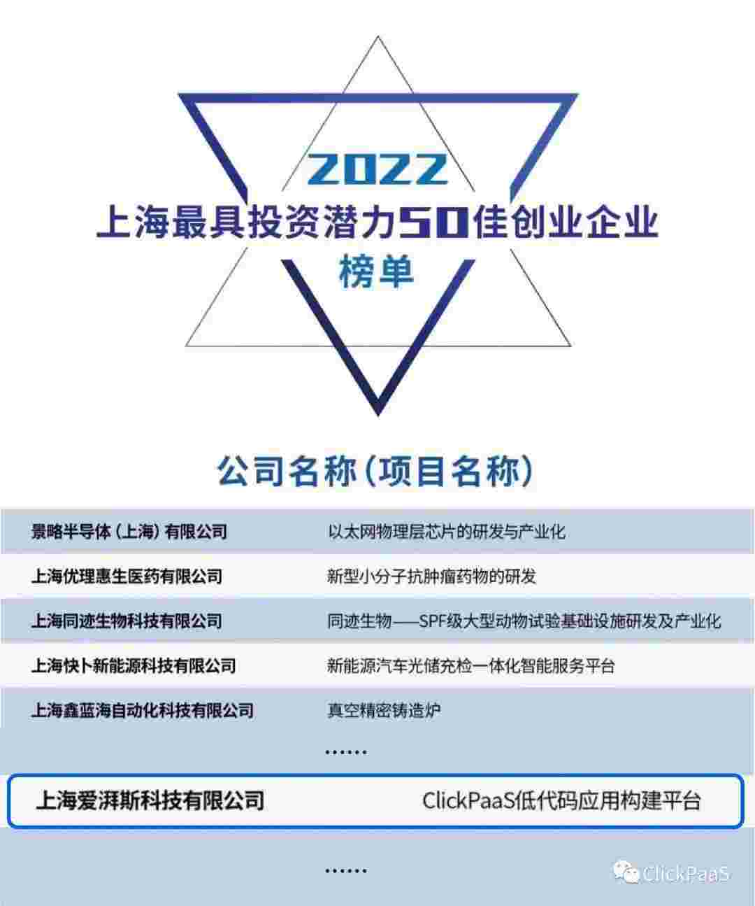 OPPO钱包 作为国内低代码PaaS平台的领军企业,,,,,,,与120家创企入围角逐。。。。。。。期间接受了来自德同资本、、、、、、、、领中资本等知名投资机构的10位投资人组成专家评委团的背靠背盲选。。。。并最终入围“2022上海最具投资潜力50佳创业企业”榜单,,,,,,,,被列入“上海市重点培育创业企业库”。。。。。。。。。。。